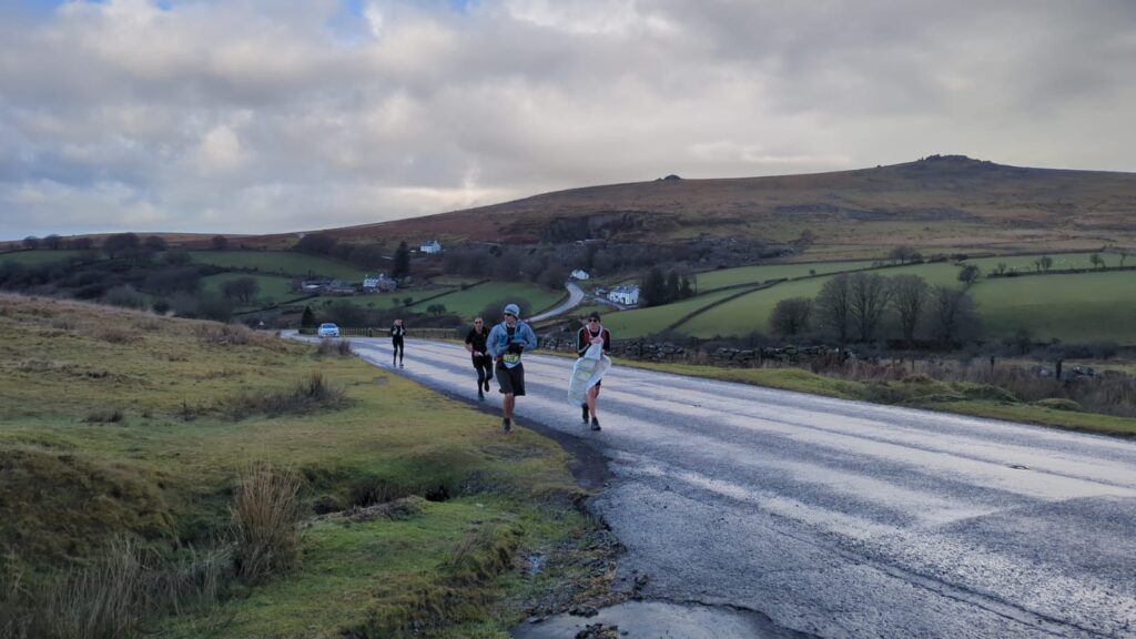 So for each runner hat, gloves, spare socks , spare warm top, spare full leg cover plus full waterproofs, whistle, extra rations and drink. Per team Minimum one survival sac ( 2 preferred and not blanket), headtorch, first aid kit, working mobile for tracking, compass and Dartmoor map.