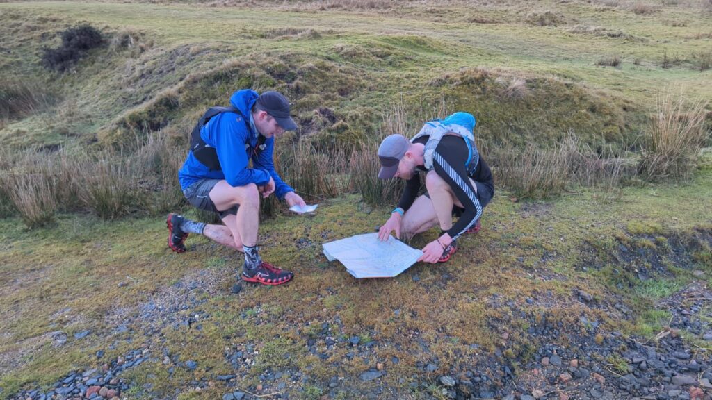 Despite a cold early start there were a lot of happy faces at the finish line following Saturday’s second pairs race. For those not familiar with the format – this is a staggered start navigational running race, in pairs for company and safety, but also with kit. Also thanks to Tim Mockford we also had lead runner phone tracking.